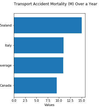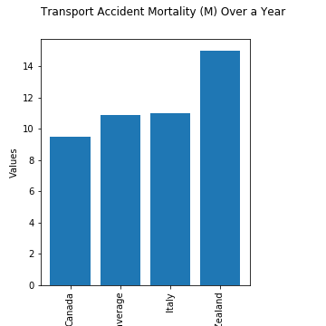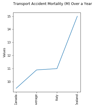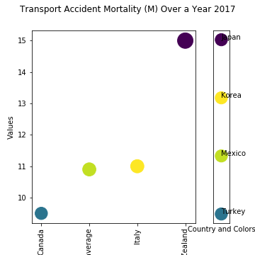 Compare Transport Accident Mortality (Male) for 2017 across countries (based on the data available). The same information plotted in different ways.