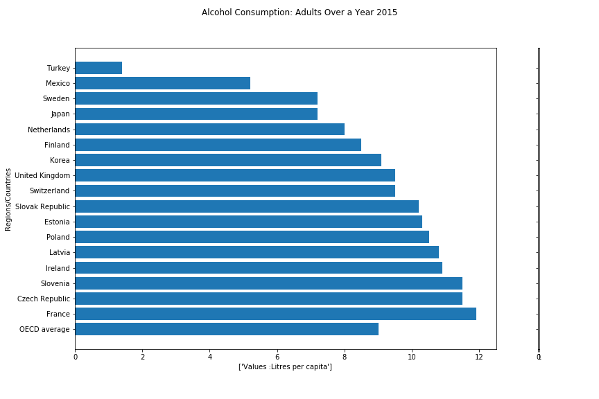 Aspect: Access to Care: Alcohol Consumption: Adults 2015. [Compare countries including Canada and Canadian Provinces]